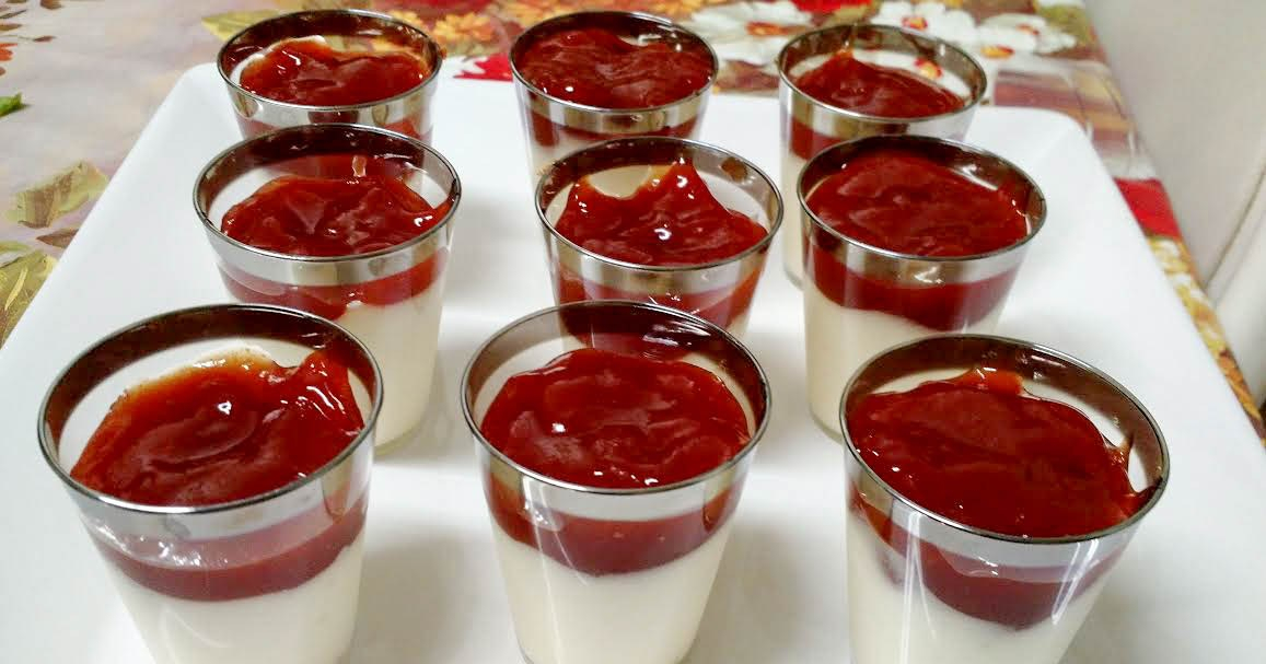 - Quando o creme estiver gelado, coloque a goiabada em cima do creme e leve para gelar novamente.